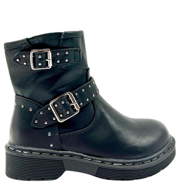 Wild Tribe Girls Strap Zip Ankle Boot - Black